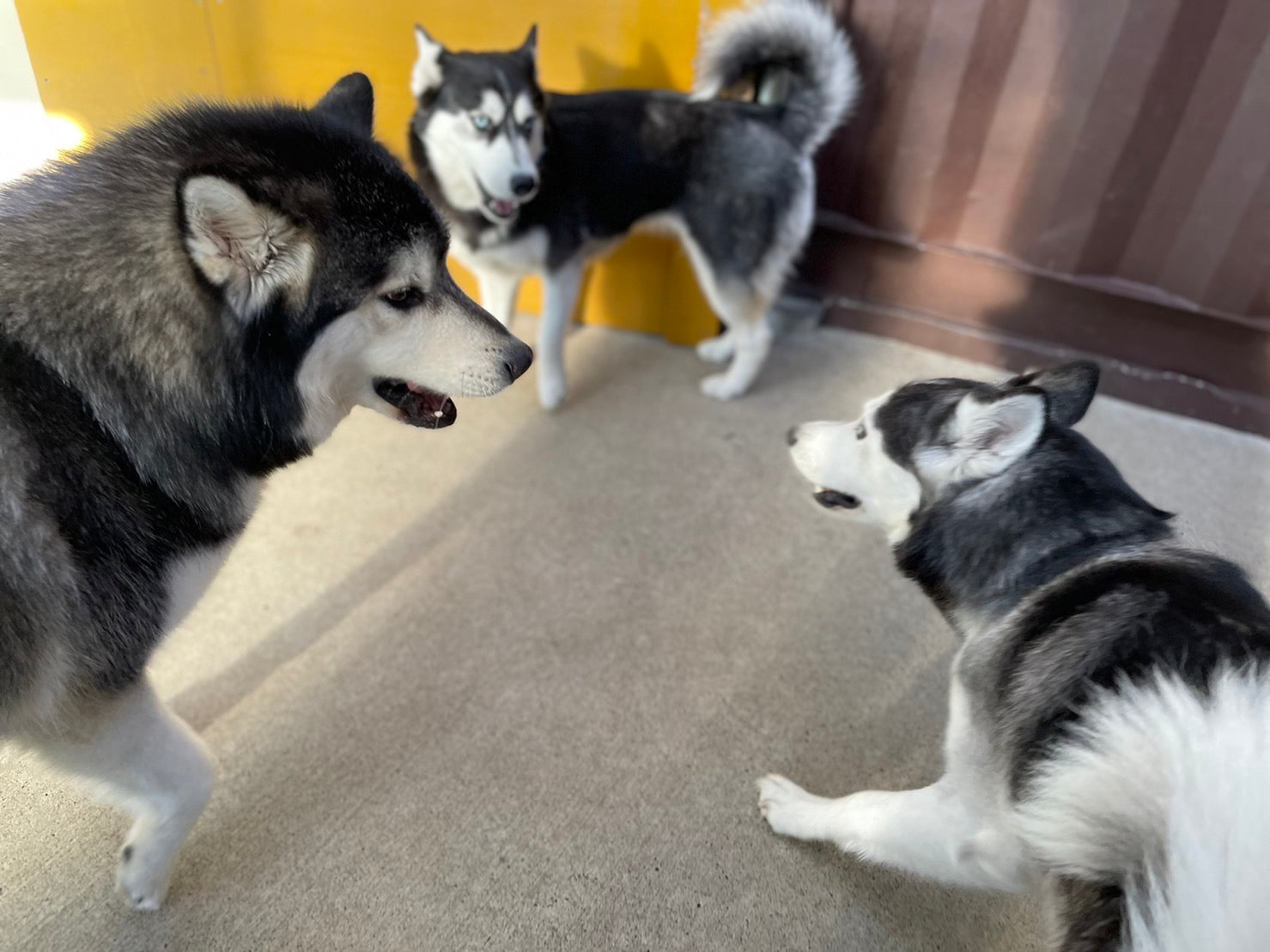 Dogs walk 2 kilometers (1.24 miles) in the local area at least twice a day in fair weather. Walks occur in the morning and in the evening.